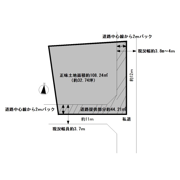 接面道路 | 南側私道約3.7m 東側私道約3.8m | 道路舗装 | 舗装済み |